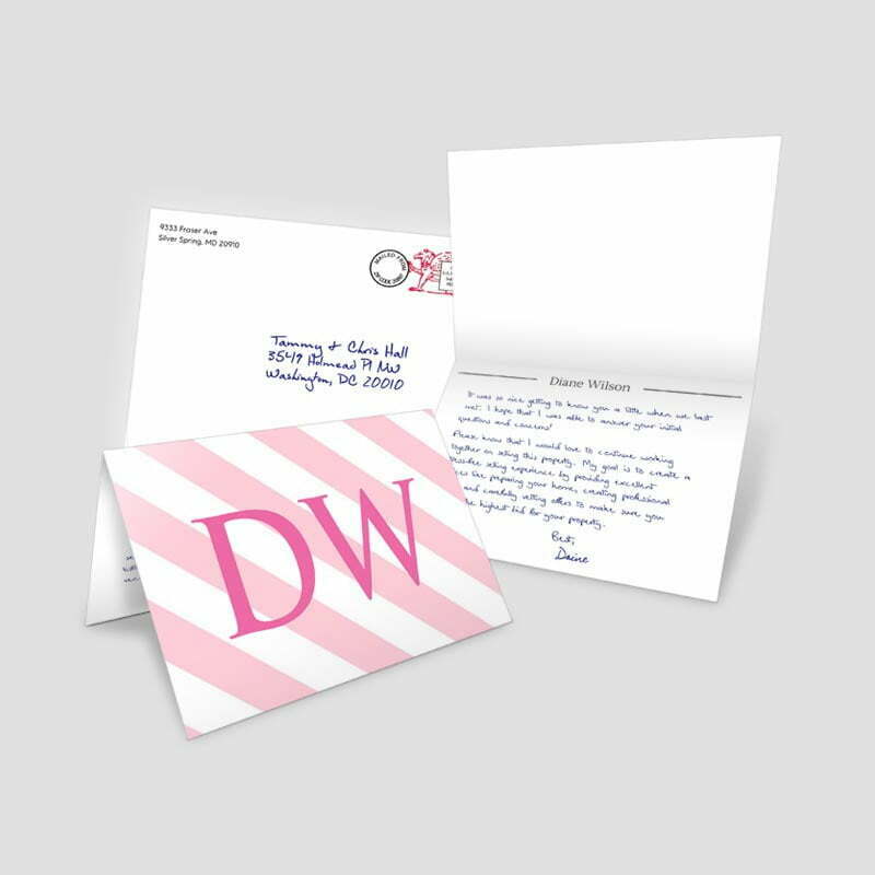 - Print, Address, Stamp & Mail – We will print your cards and print your recipients name and address on the envelopes from your uploaded list and affix a First Class Forever Stamp or Postage Meter Stamp on the envelope and mail. We will process your list a best we can to optimize delivery via our USPS CASS, PAVE NCOA Certification