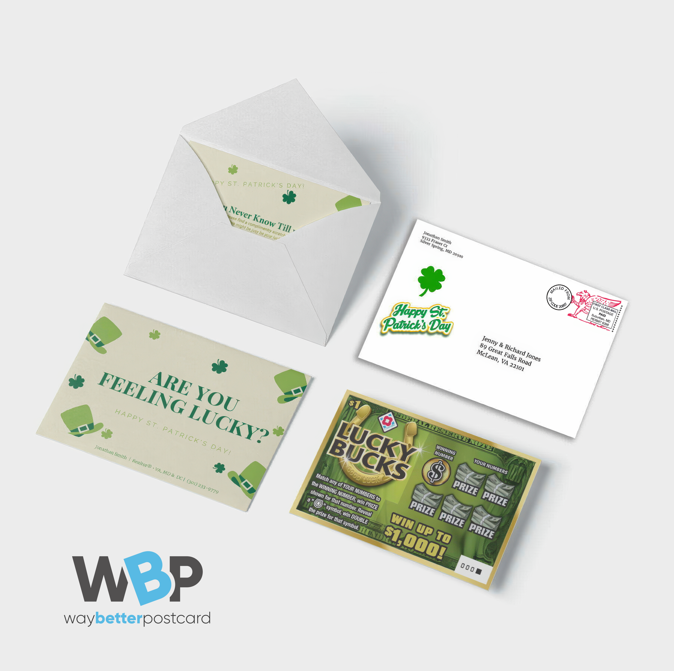 Make a lasting impression on your Sphere of Influence or Client List with a unique “Touch”, all-inclusive direct mail campaign. Don’t take these nurtured connections for granted—use this opportunity to stand out and keep your name at the top of their minds! This campaign features a custom note card mailed in a special envelope, complete with a $1 Scratch-Off Lottery Ticket (or a no-value St. Patrick’s Day Bingo Card for a festive touch). When recipients open their mail, they’ll be pleasantly surprised—thinking, “Wow, that’s really thoughtful!”How It Works:
